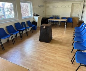 These two rooms are located at the rear of the building and can be accessed via the side doors without the need to enter via the main hall. Both rooms are the same size and can occupy 12 people seated at tables, 15 standing or 15 closely seated audience and each have their own private toilets attached. An ideal space for small meetings, craft groups and office space.